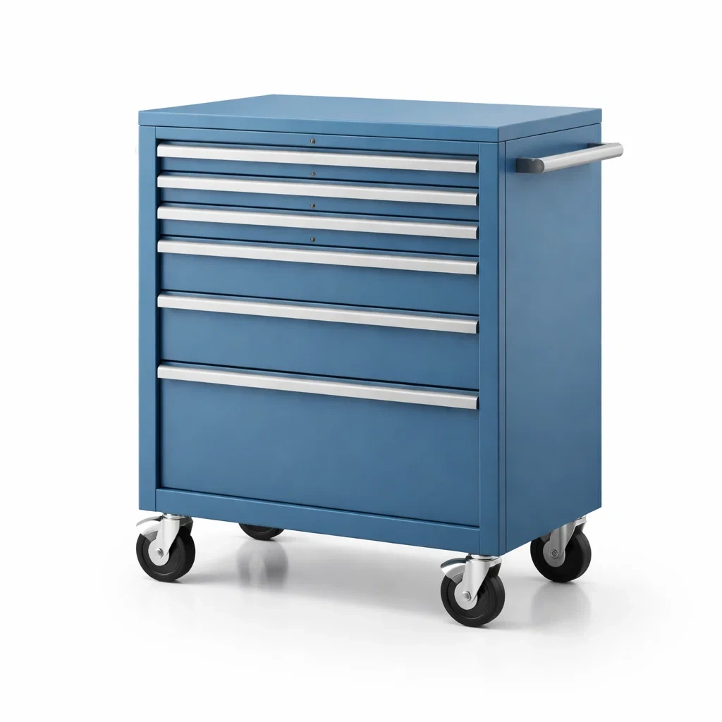 Chariot à outils de rangement en métal avec roulettes et 6 tiroirs bleu