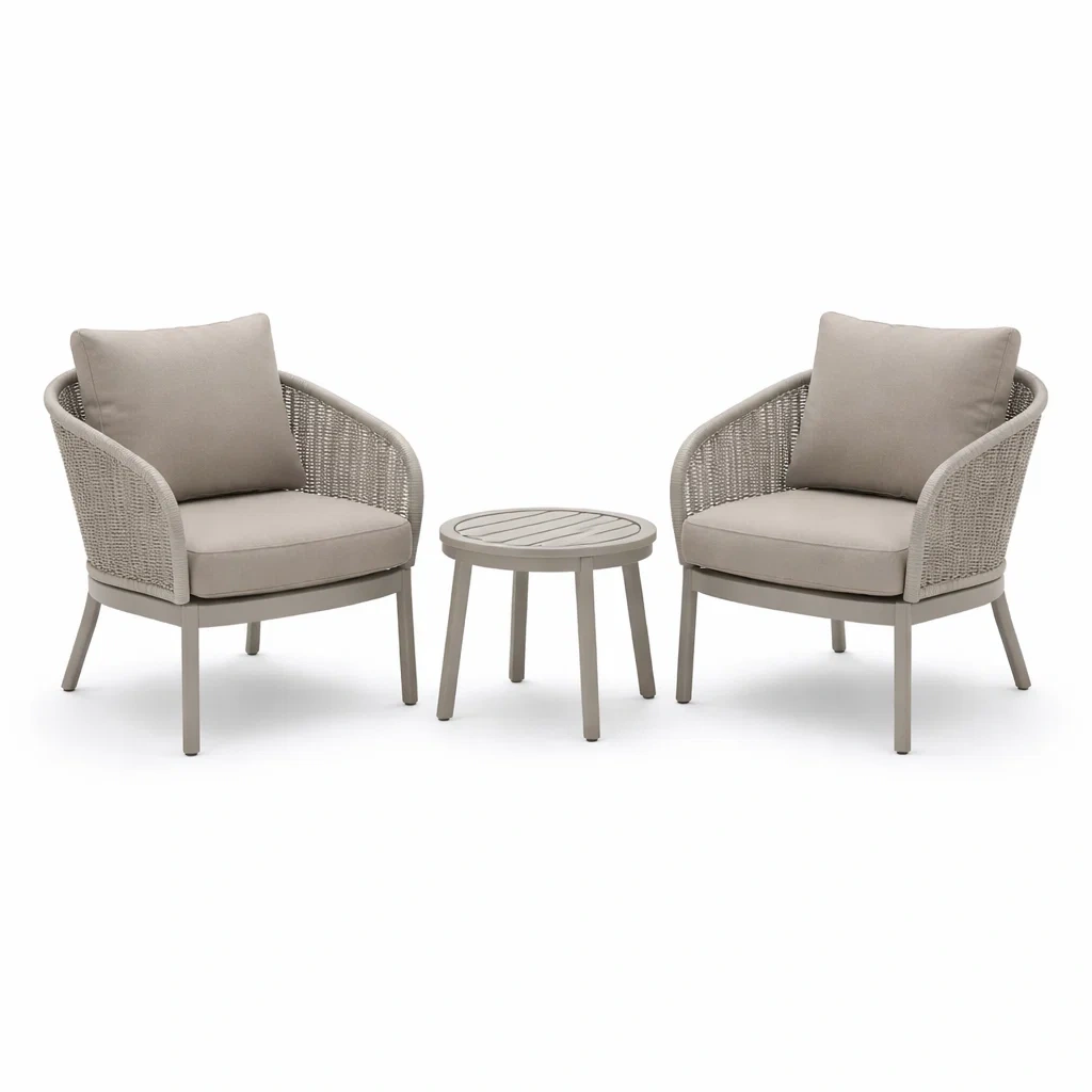 Matériau : Aluminium, coussins en polyester, rotin synthétique.